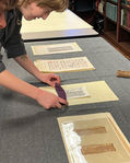 Students of Latin 302 course examining a curation of art relevant to their studies.
